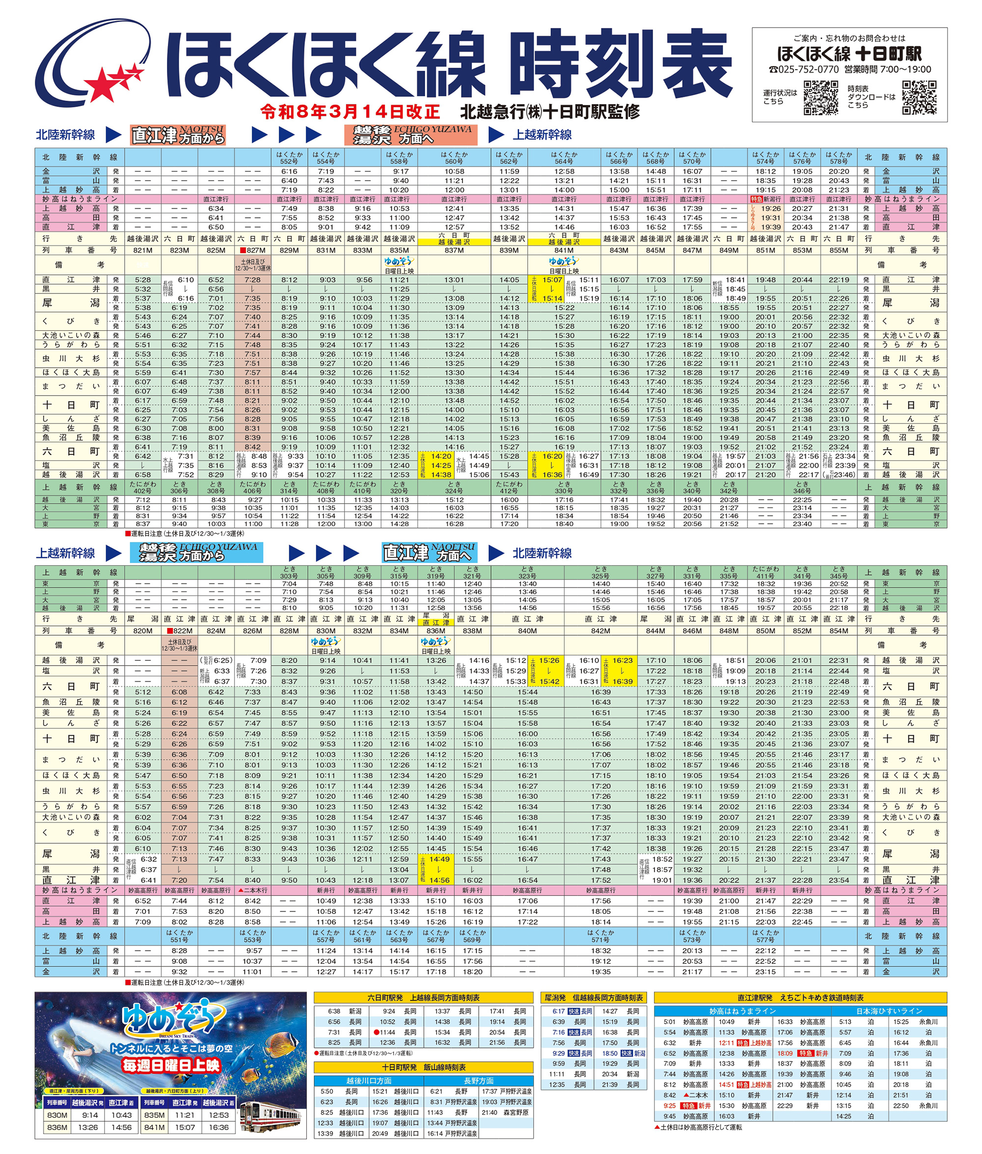 | 令和8(2026)年3月14日ダイヤ改正 北越急行(株)十日町駅監修 |
