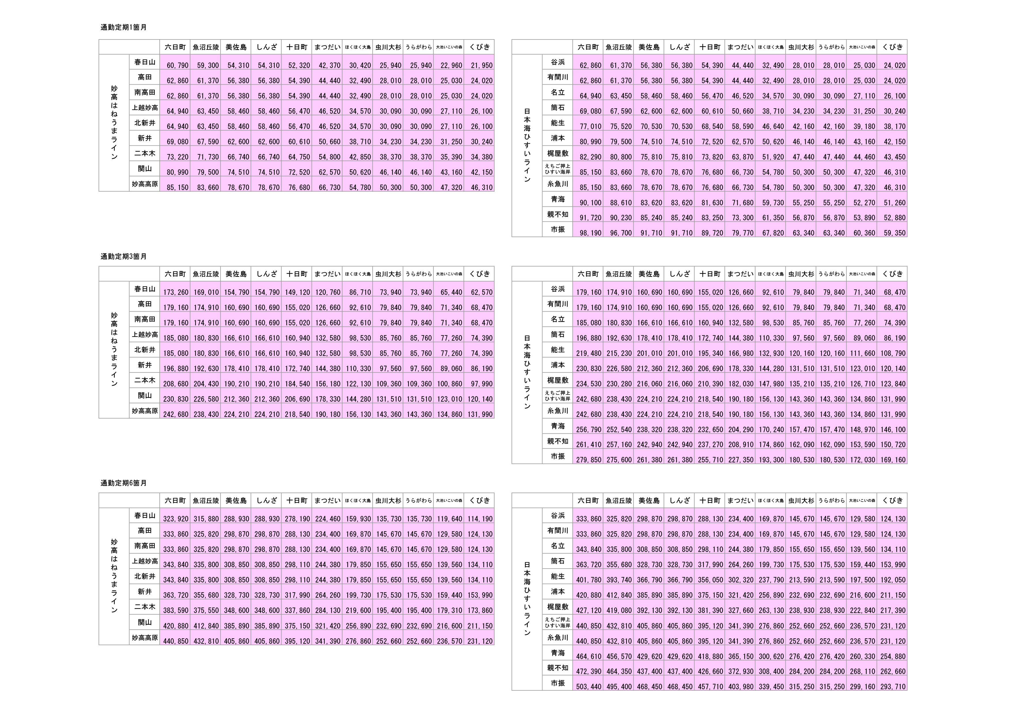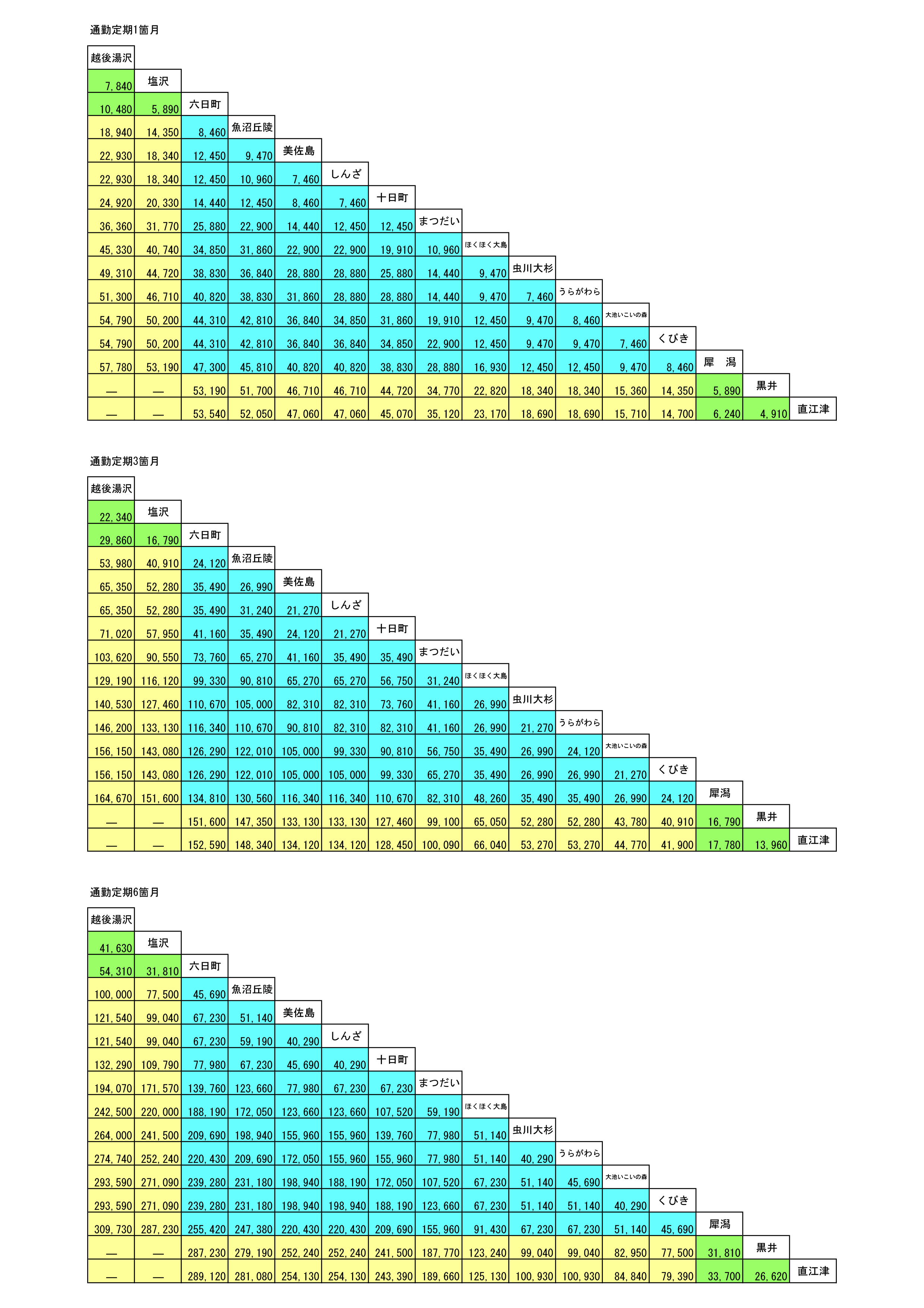 通勤定期運賃表