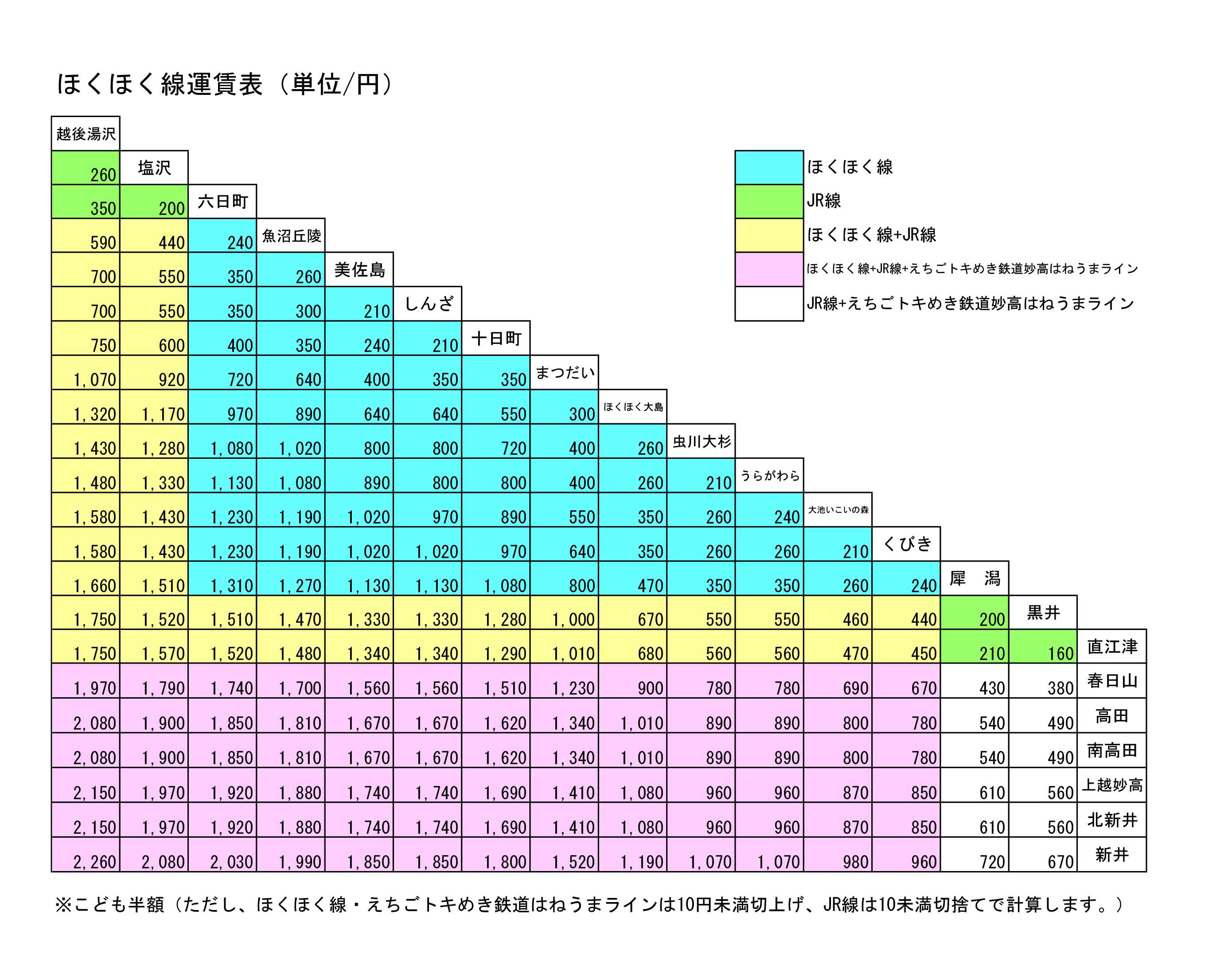 ほくほく線運賃表
