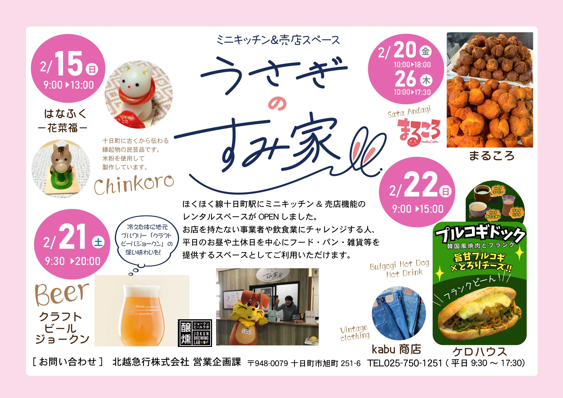 2月「うさぎのすみ家」(十日町駅構内)出店情報